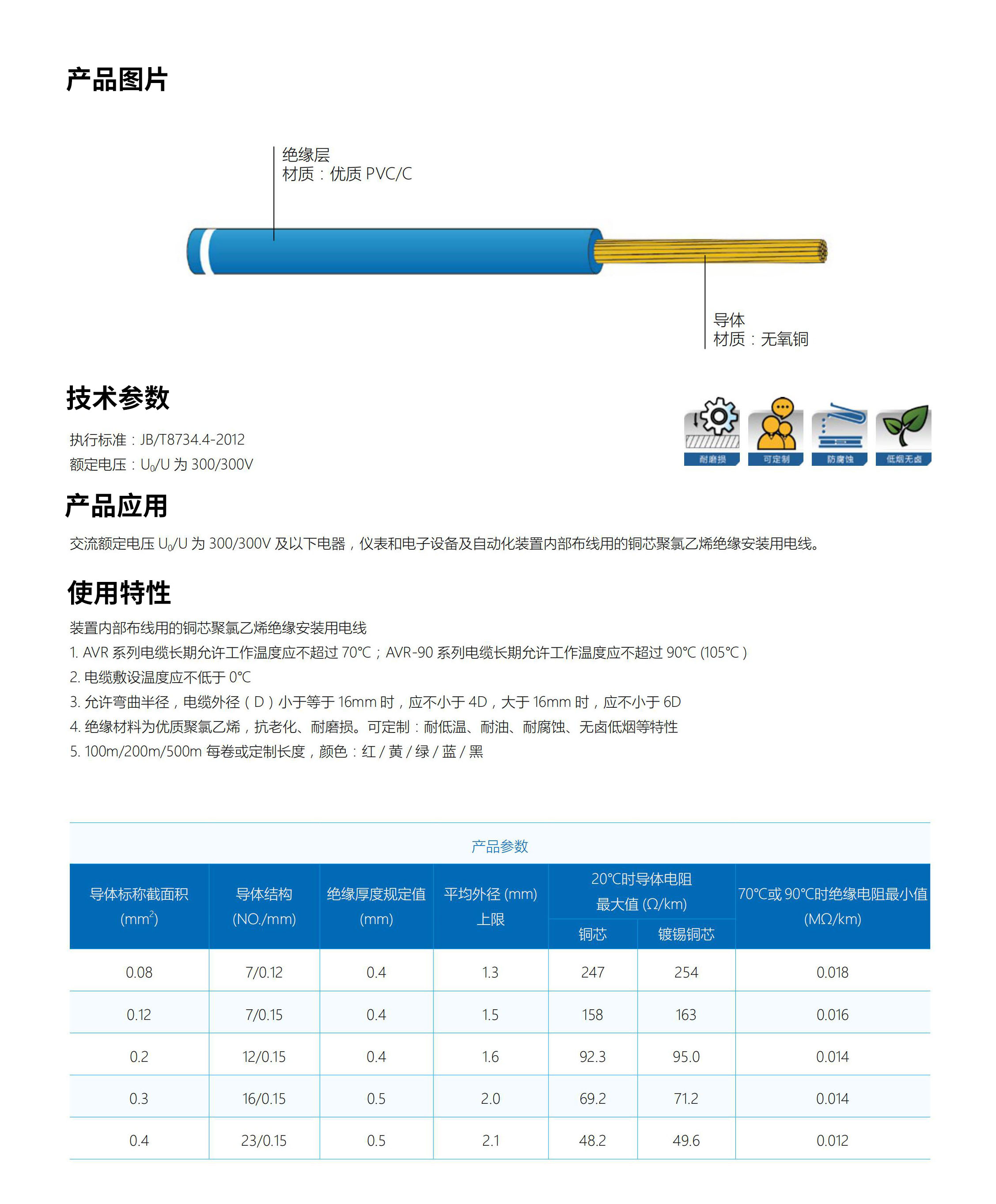 铜导体聚氯乙烯绝缘安装用软电线 AVR型